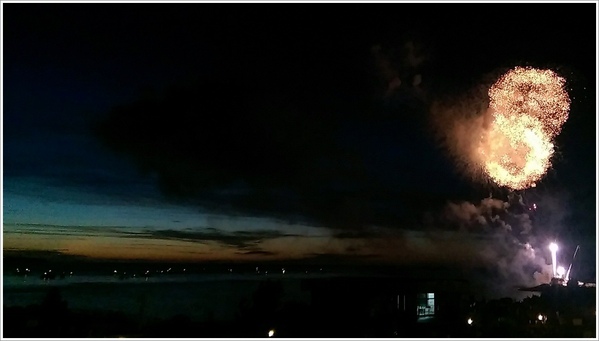 這是我有始以來看過最安靜的煙火,民族性始然吧,煙火那麼美的在天邊目不睱給地綻放,是人都會哇哇哇叫不停吧...日本人不會捏...也沒有放二首音樂來搭著煙火,也沒有司儀用麥克風嚷著:這是萬箭齊發,象徵著日新又新...之類的。