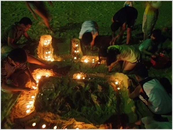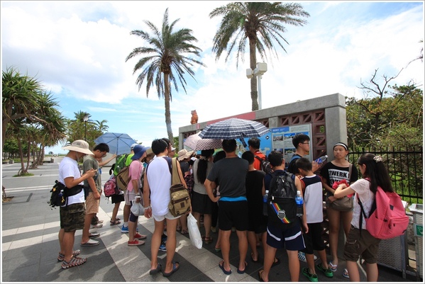 團體的行程沒有空走到下面的沙灘去(下圖為網路相片),大夥兒先來這裡感受日本的氣息,拍張大合照後,就出發到小祿去吃午餐了。