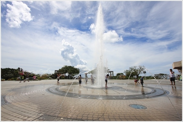 戶外的噴水池好消暑。