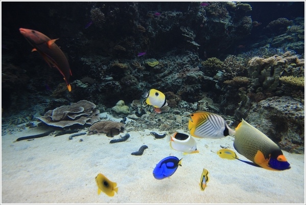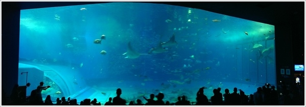 這曾是亞洲最大的水族箱~黑潮之海,現場看真的很壯觀,而且坐在地上看大小魚兒們游來游去真的不會膩耶。