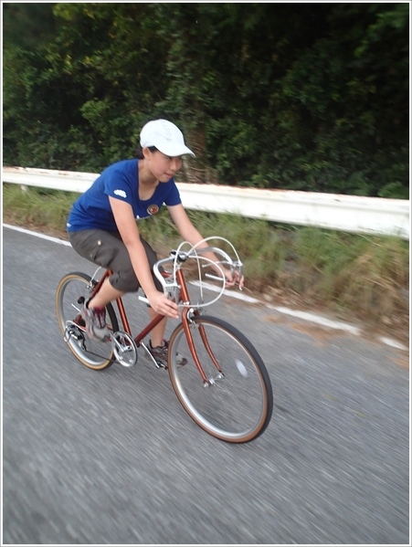 不知為什麼,我好喜歡這張耶。戴安全帽的小三已經騎了廿公里了,大人都又喘又熱又累又屁股痛的沒精打采,他還能揚著笑臉真可愛。