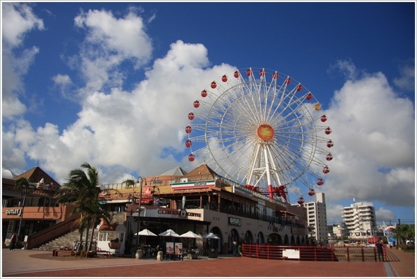 暑假的周六又逢花火大會,水族館內的人潮頗多,而且還有很多學齡前的小小孩,可是整個參觀遊覽的環境品質很好,偶有遇到推擠或大小聲的都不是日本人。走出水族館,戶外愈晚愈熱鬧,因為今夜是沖縄境內規模最大的花火會,我們也要去參加喔 ^^