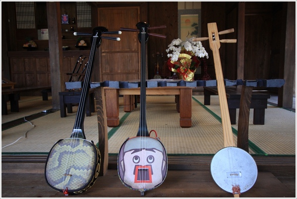 這是沖縄文化表演中常見的三線琴,琴身兩面蒙有蛇皮,所以也有人稱為蛇皮線或蛇味線。
