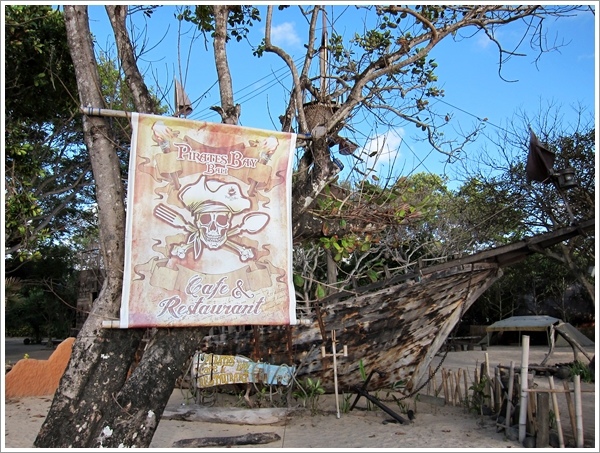 柵欄圍起了一大塊的海邊沙地,散落著木船破帆佈置著金銀島的海盜氛圍。