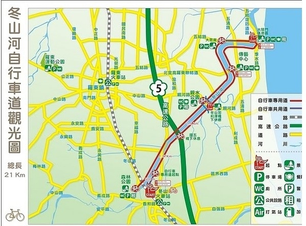 我們從利澤簡橋騎到臨海邊的五結閘門再由對岸騎經親水公園到冬山車站折返。